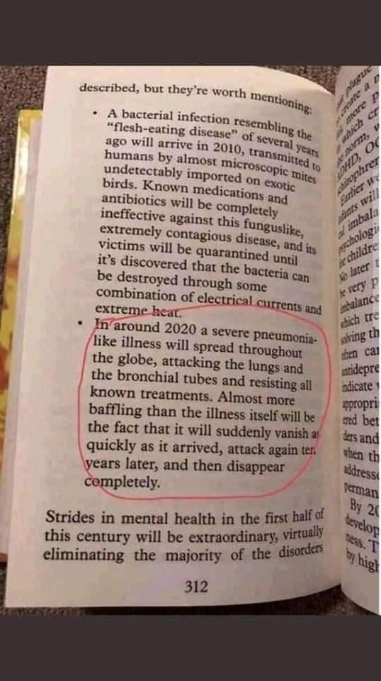 فقد كتبت العالمة النفسية سيلفيا براون في كتابها لعام 2008 عن فيروس يشبه الالتهاب الرئوي يضرب العالم في عام 2020.