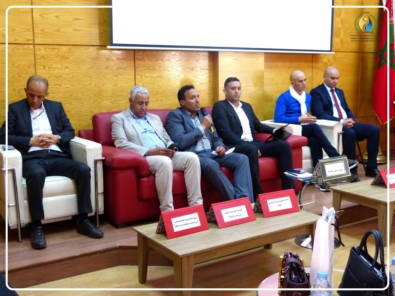 وقد خصصت الفترة الصباحية لندوة علمية قام بتسييرها الأستاذ أيمن حيلي، من كلية الآداب والعلوم الإنسانية ببني ملال، وتضمنت ثلاث مداخلات علمية قدمها كل من الأستاذ طارق العرفي عن جامعة القاضي عياض بمراكش، والسيد أمين ياسين عن المكتب الجهوي للاستثمار الفلاحي لتادلة، والسيد باسو بوعزامة عن المركز الجهوي للبحث الزراعي لتادلة، بني ملال. وقد أبانت هذه المداخلات عن تكامل ثلاث مقاربات أساسية في التعاطي مع إشكالية الماء بالإقليم، حيث ركزت المداخلة الأولى على البعد العلمي من خلال تحليل دينامية الجفاف وفهم تحولاته في ظل التغيرات المناخية، فيما سلطت المداخلة الثانية الضوء على البعد التدبيري المرتبط بتحديات استدامة الفلاحة السقوية وسبل ترشيد استعمال الموارد المائية، بينما أبرزت المداخلة الثالثة أهمية البحث الزراعي كرافعة للابتكار وتعزيز قدرة السلاسل الفلاحية على التكيف، بما يؤكد ضرورة اعتماد رؤية مندمجة تجمع بين المعرفة العلمية والتدبير المحكم والابتكار التقني.